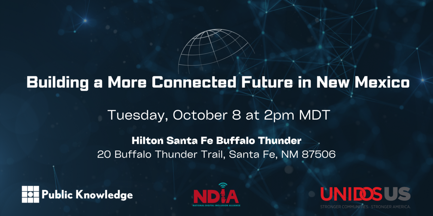 Join Public Knowledge, UnidosUS, and the National Digital Inclusion Alliance on October 8th for engaging policy discussions with federal, state, and local policymakers, community-based organizations, and business leaders as they share insights on strategies for closing the digital divide with a particular focus on broadband affordability and broadband adoption.