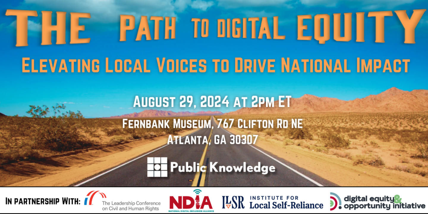 Hosts: Public Knowledge, The Leadership Conference on Civil and Human Rights, National Digital Inclusion Alliance, Institute for Local Self Reliance, and Digital Equity and Opportunity Initiative