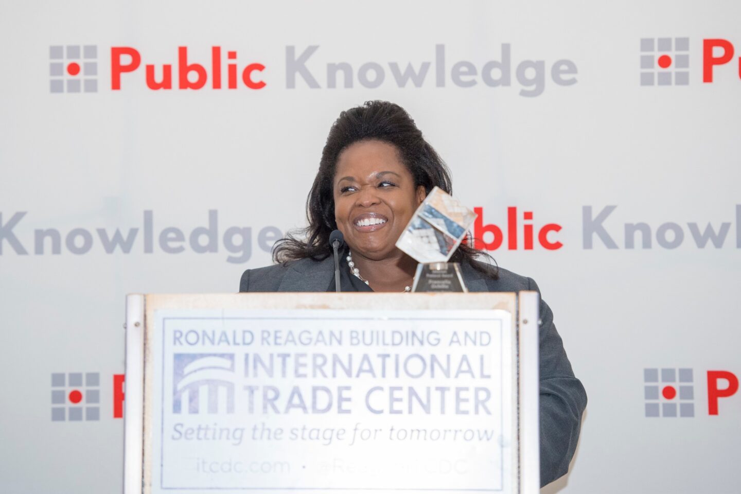 Finally, we presented the Internet Protocol Award to Francella Ochillo, an attorney and public interest advocate who works to ensure that all Americans can benefit from advances in technology regardless of geography or income. Her work at Next Century Cities highlights the importance of making digital equity a foundational principle in broadband access and adoption program development. During her tenure as executive director, Francella elevated community-based perspectives in Federal Communications Commission, Federal Trade Commission, and National Telecommunications and Information Administration proceedings, memorializing the local impact of federal policy proposals.